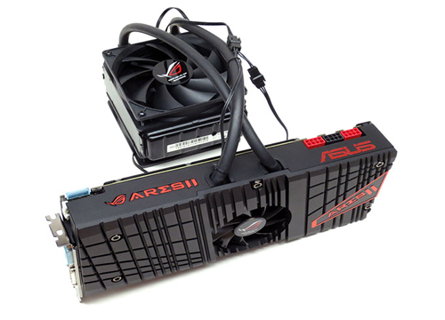 Asus AMD Radeon ROG Ares II 6GB הנו מפלצת של ממש, כשהוא מגיע באורך של כ 30 סנטימטרים ומכיל זוג ליבות Radeon HD 7970 מגרסת ה GHz Edition בתדר של 1100MHz (עם טכנולוגיית ה Turbo Boost) וזיכרון גרפי בנפח של 6GB מסוג GDDR5 בתדר של 6.6GHz.