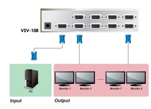 מפצל וידאו זה מציע איכות ומרחק יוצא דופן, המאפשר לך להעביר וידאו VGA ברזולוציה גבוה ממקור וידאו אחד לאחר.