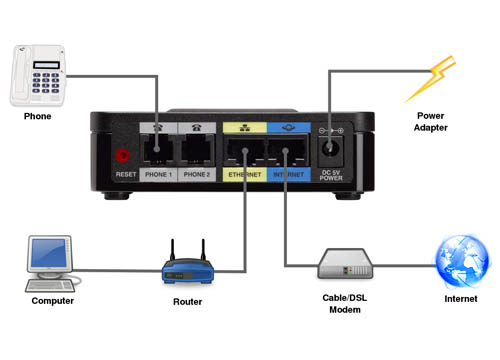 מתאם VoIP משולב ראוטר של חברת סיסקו, המספק פתרון יעיל למגוון רחב של הגדרות ושירותי VoIP עם שתי יציאות טלפון ויציאת Ethernet לגלישה במהירות גבוהה.